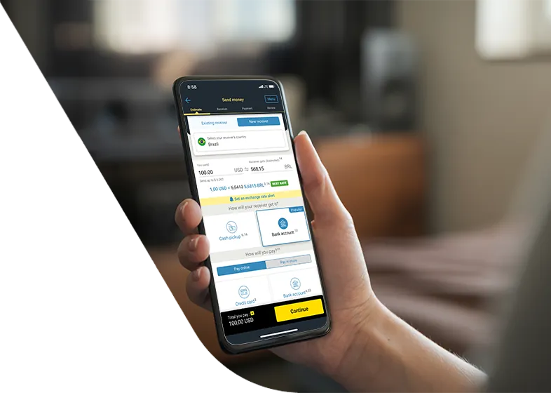 Send money to Brazil in the way that’s convenient for you: online, with our app, or in person at an agent location.